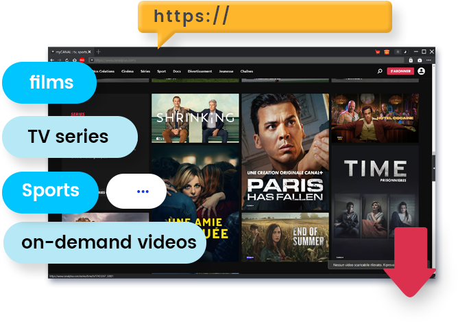 CleverGet Canal Plus動画ダウンロードはは、Canalplus.com上で再生可能なすべてのオンデマンド動画に対応した高性能ダウンロードソフトです。映画や最新シネマ作品、人気テレビドラマやシリーズ、スポーツ配信、ドキュメンタリー、エンターテインメント番組まで幅広くカバーしています。ソフト内蔵のブラウザを使えば、ログイン → 検索 → 再生 → ダウンロードまでをすべて数クリックで完了。特別な設定や複雑な操作は不要で、初めての方でも直感的にCanal Plus動画を保存できます。