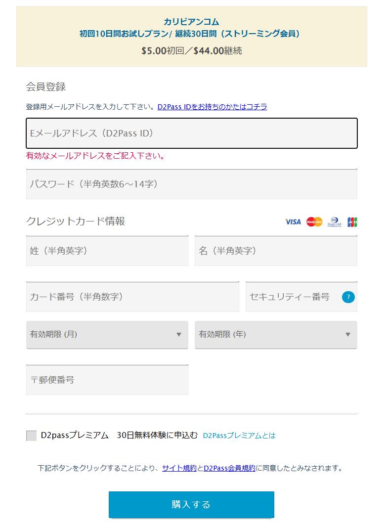 動画単品の価格は、安いものでは1ドルから、高いものでは60ドル以上まで幅広く設定されています。購入には共通認証サービス「D2Pass」のアカウントが必要で、メールアドレスやクレジットカード情報を登録することで利用できます。