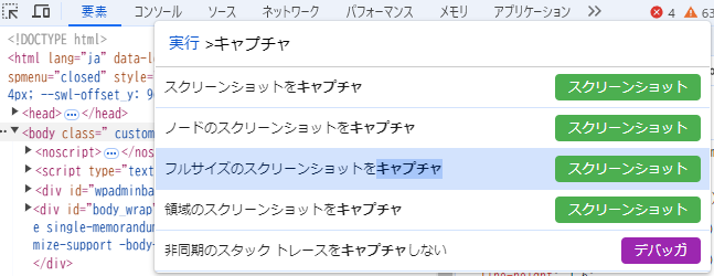 また、実はGoogle Chromeブラウザには、「デベロッパーツール」内にスクリーンショット機能が標準で搭載されています。この機能を使えば、ウェブページ全体を撮影したり、特定の要素だけをキャプチャしたりすることが可能です。