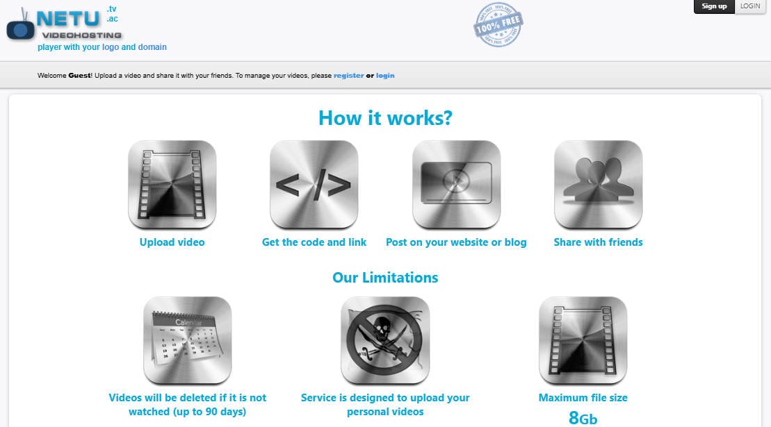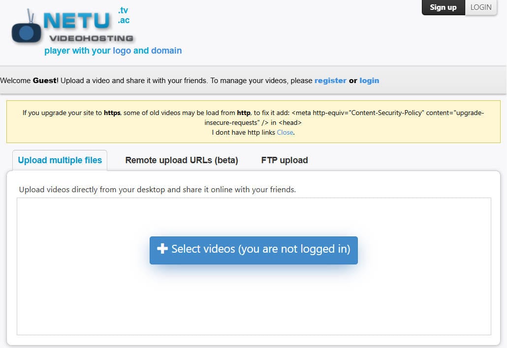 • netu.tv(netu.ac)は、動画をアップロードして共有できる海外系の動画ホスティングサービスです。