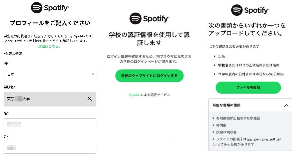 なぜなら、Spotifyは学割プランの適用条件を確認するために「SheerID」を利用しているからです。この認証プロセスでは、学生であることを証明するために必要最小限の情報(学校名や在籍証明書など)が提出されますが、これらの情報は適格性の確認のみに使用され、学校側へ個別に連絡が行われることはありません。