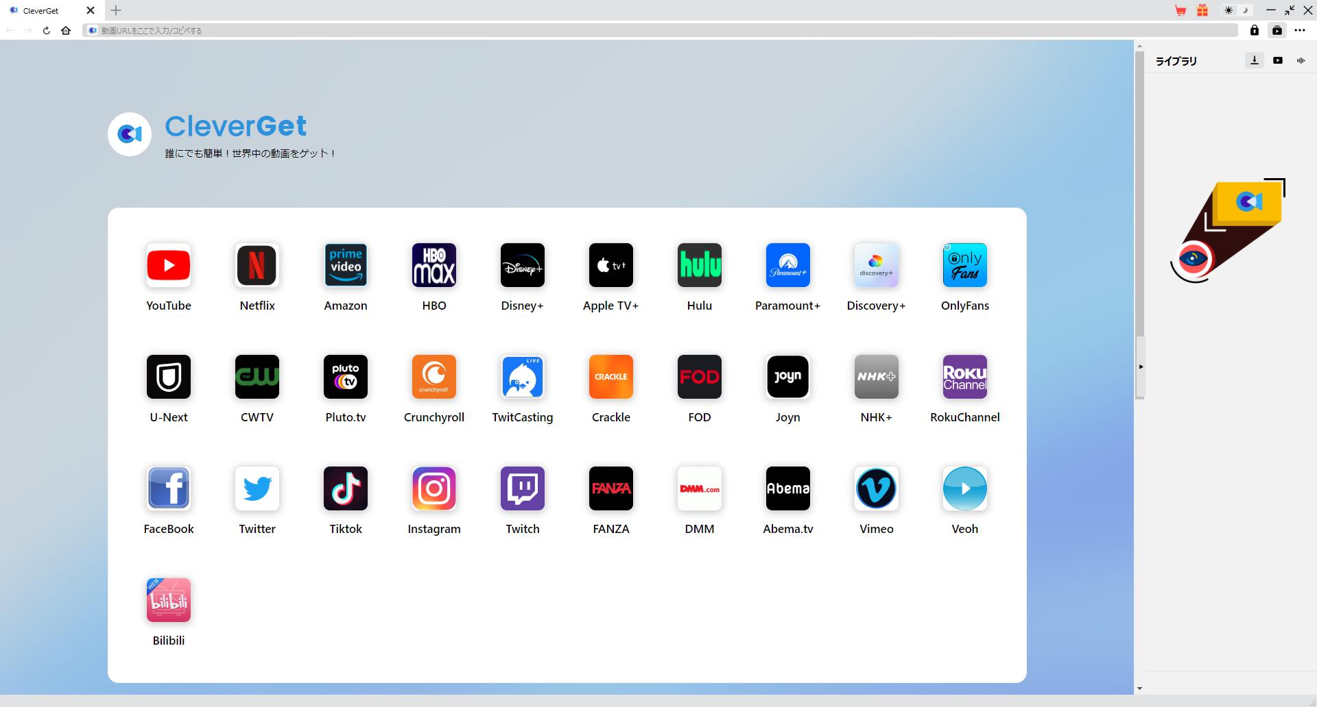 CleverGetは直感的なインタフェースを搭載して、初心者でも簡単にNetflix、Amazonプライム、Disney+、Hulu、U-NEXT、FOD、ABEMA、TVer、DMM TV、楽天TV、YouTube、Twitter、TwitchやTiktokなど、1000以上の動画配信サイトから動画や音楽、生放送やライブ配信、TV番組やプレイリストを高画質でダウンロードできるし、ユーザーエクスペリエンスを向上させる豊富な設定もあって、ダウンロードのなかでもっとフレンドリーな動画ダウンロード体験は得られます。