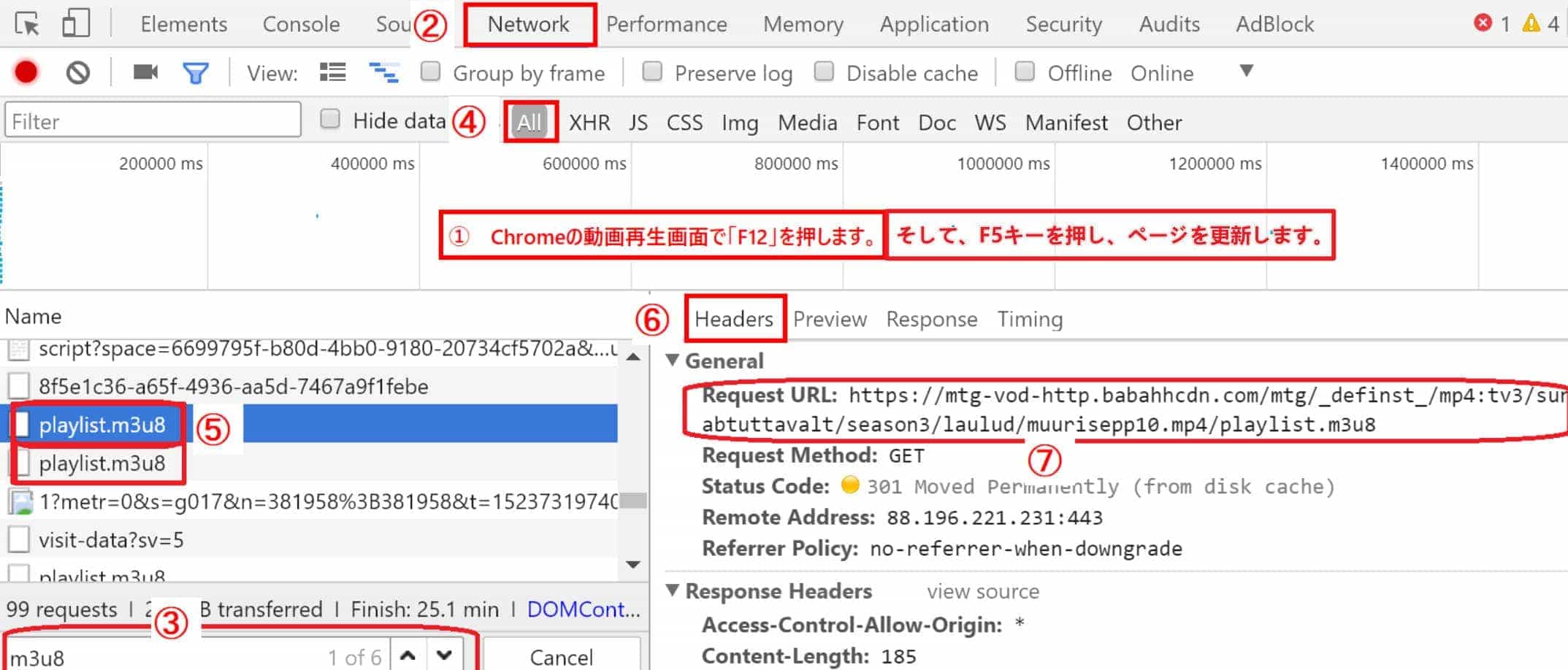 M3U8のURLを抽出するには、ブラウザの開発者ツールを使えば無料でできます。詳細のやり方は以下の通りです。